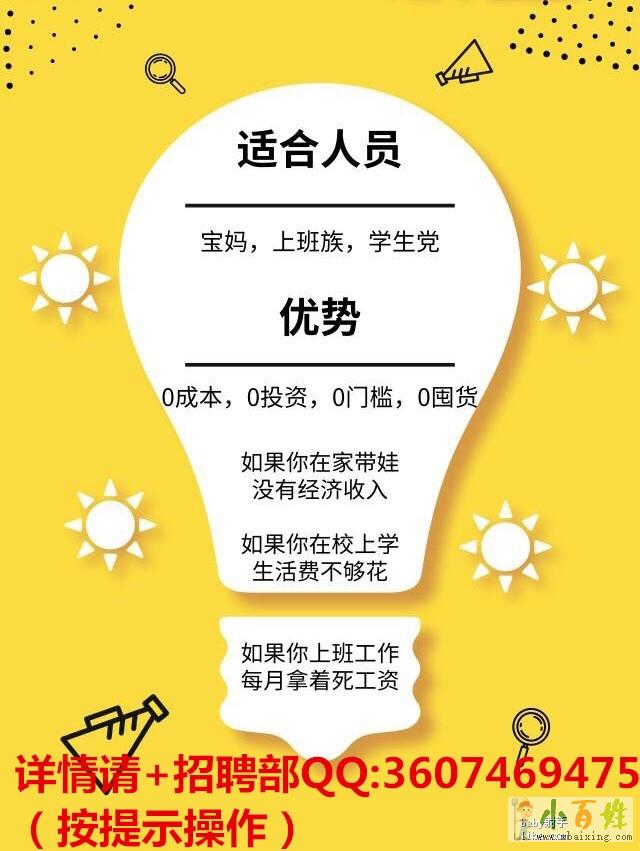 3 适合全职妈妈,大学生,在家待业人员,上班族的第二职业小+百+姓+网。 男女均可
